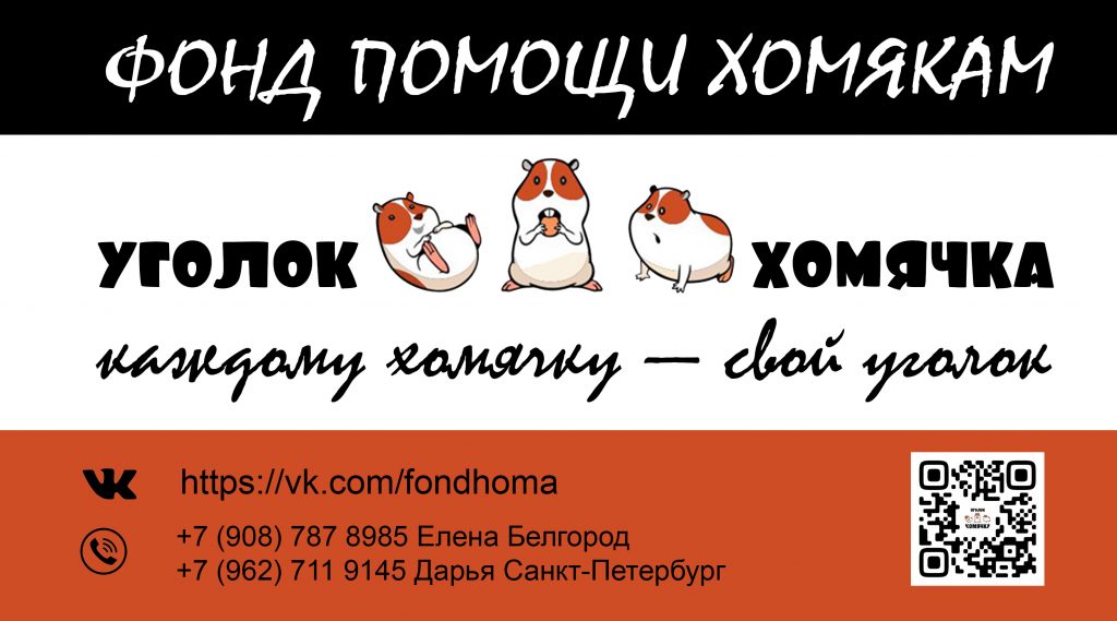 Фонд помогает хомякам, попавшим в трудную ситуацию: выброшенным на улицу, найденным в различных местах, отказникам по причинам, несовместимым с жизнью.